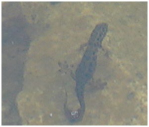 Vorkommen heimische Lurche bzw. Amphibien: Bild (l) Frosch 2010, Foto (r) Molch 2008