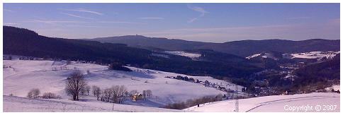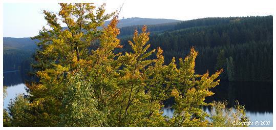 Berge im Erzgebirge, Blick auf den Auersberg und die Talsperre Sosa, 2007