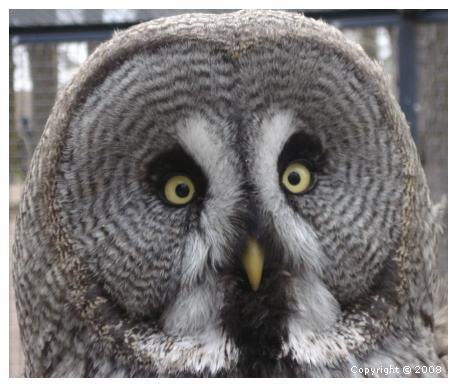 Eulen sind auf das nächtliche Leben super angepaßt und ausgezeichnete Jäger. Ihre großen, unbeweglichen Augen sind nach vorn gerichtet und ermöglichen es, Gegenstände und Tiere räumlich zu sehen, aber auch Entfernungen und Geschwindigkeiten abzuschätzen. Durch die Fähigkeit ihre Pupille sehr stark vergrößern zu können, vermögen sich Eulen auch bei schwachem Licht im Wald zurechtzufinden. Allerdings sehen auch sie bei stockdunkler Nacht nichts. Das Gesichtsfeld ist durch den großen Bewegungsradius des Kopfes von 270° recht groß und somit entgeht Ihr, trotz unbeweglicher Augen, fast nichts.