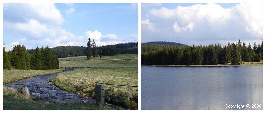 Entlang von Sehenswürdigkeiten in Tschechien, Foto (l): Schwarzwasser; Bild (r): Stausee Myslivny; Erzgebirge 2008