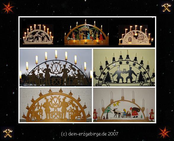 Der erzgebirgische Schwibbogen soll aus der Zeit des Bergbaus stammen. Überlieferungen zufolge haben die Bergmannsfrauen in der finsteren Jahreszeit ihren aus den Gruben heimkehrenden Männern mit hellen Lichtern im Fenster den Weg geleuchtet.