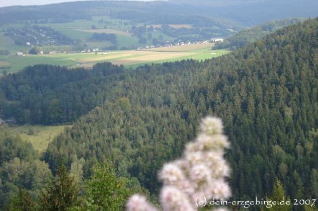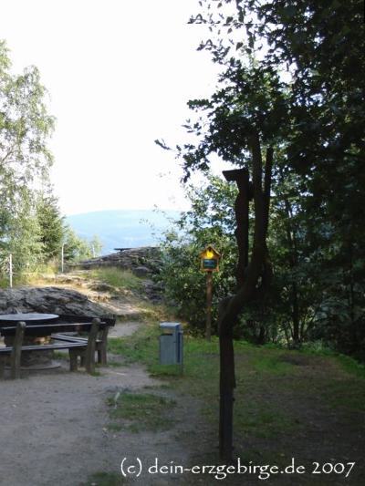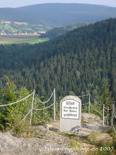 Bei gutem Wetter gibt die Kanzel in Albernau schöne Ausblicke ins Erzgebirge frei, so z.B. ins Muldental oder zum Auersberg u.v.m.