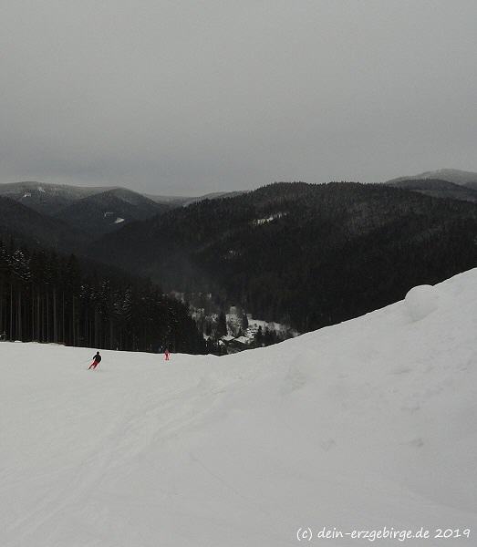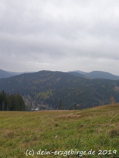| Foto: "Wandern entlang schöner Wanderwege auf dem Bleiberg bei Schwaderbach (Bublava) ..." | Bild: "Am Berg Olovený vrch (Bleiberg) | Blick auf die Ski Piste ... im Februar 2019" |