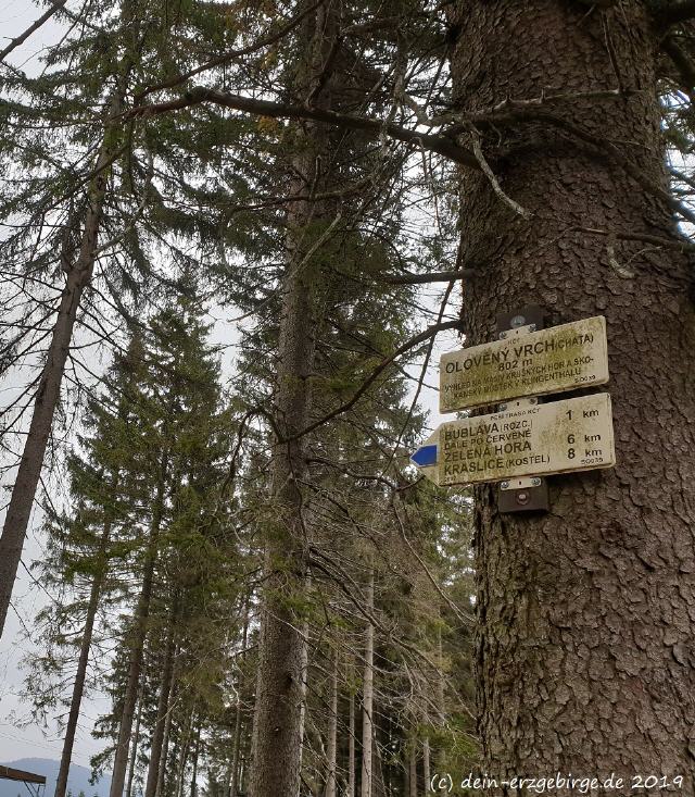 | Bild: "Im Erzgebirge, auf dem Berg Olovený vrch (Bleiberg) in Tschechien (November 2019)" | Foto: "Bei Schwaderbach (Bublava) | Blick zur Gaststätte, Aussichtsturm ... auf dem Bleiberg" |