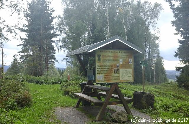 Oben auf dem Berg gibt es einen Aussichtspunkt mit Sitzgruppe und man hat bei entsprechendem Wetter u.a. Aussicht in Richtung Kirchberg oder z.B. in Richtung Kuhberg bei Stützengrün ... (Stand 2017) Auch findet man u.a. eine Tafel mit interessanten Informationen zur historischen Triangulationssäule vom Hirschenstein ...