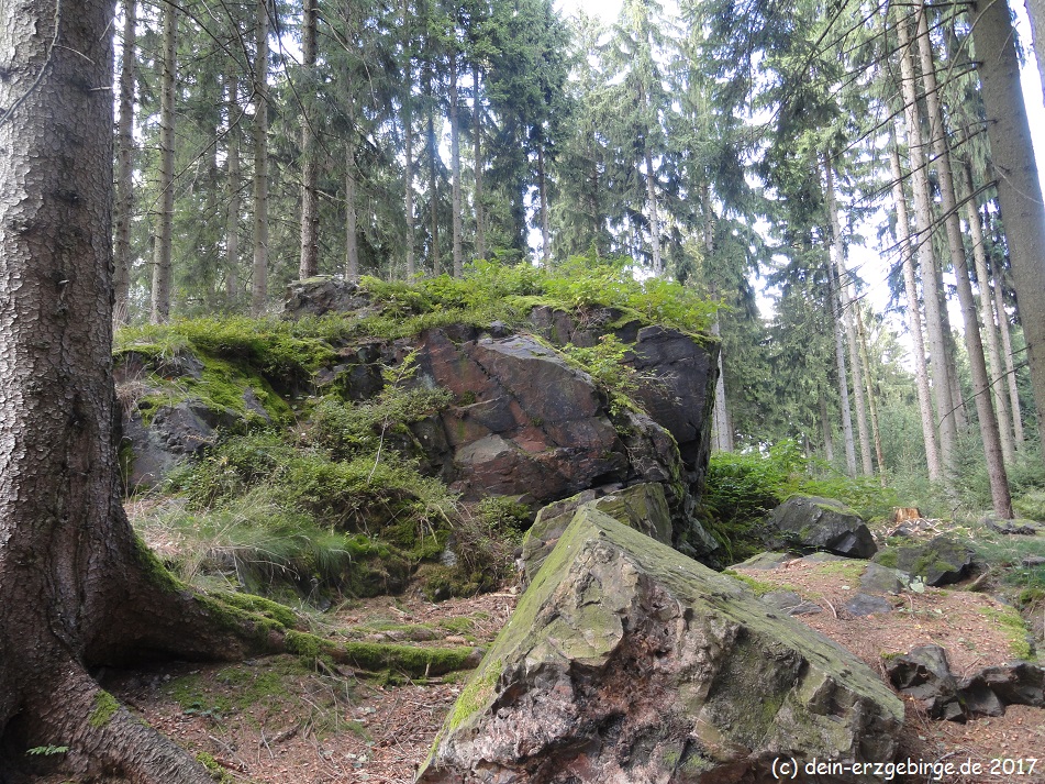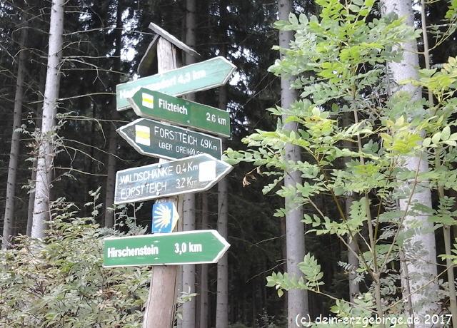 Wanderungen zum Hirschenstein in Sachsen sind sehr reizvoll und es gibt verschiedene Wanderwege bzw. Wanderrouten in dieser Region ... So u.a. aus Richtung Hartmannsdorf (b. Kirchberg) oder beispielsweise aus Richtung Lindenau (OT von Schneeberg) ... Die Wanderrouten bzw. Wanderwege führen dabei durch eine sehr idyllische Natur und Landschaft von Sachsen.