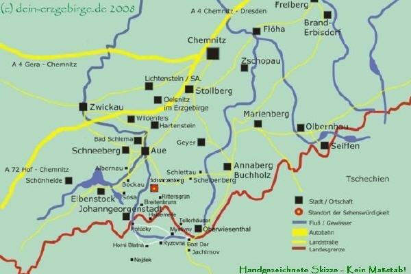 Im Gebiet von Schwarzenberg und Bermsgrün führen attraktive Wanderwege durch die reizvolle Natur im Erzgebirge, so z.B. der Rundwanderweg Bermsgrün oder der Internationale Bergwanderweg der Freundschaft Eisenach–Budapest (EB-Weg) ... aber auch Wintersport ist gut möglich, wie z.B. Rodeln, Langlauf in schönen Loipen oder Abfahrtslauf am Skihang in Bermsgrün ... dabei eröffnen sich entlang der Skipiste fantastische Aussichten auf markante Berge vom Erzgebirge uvm.