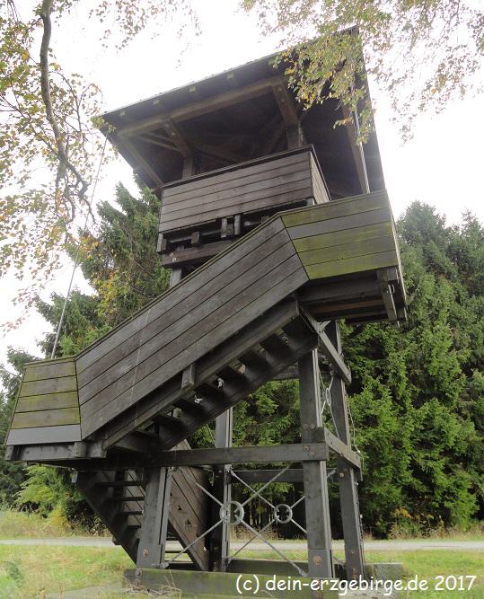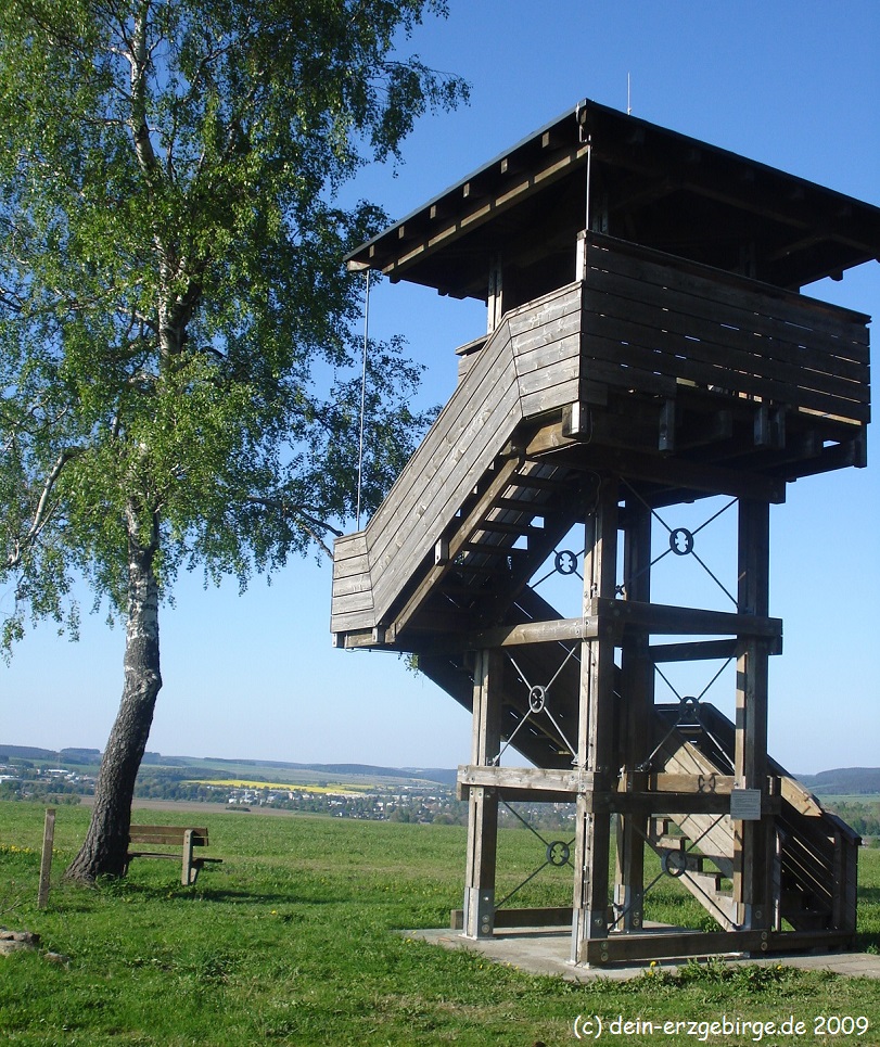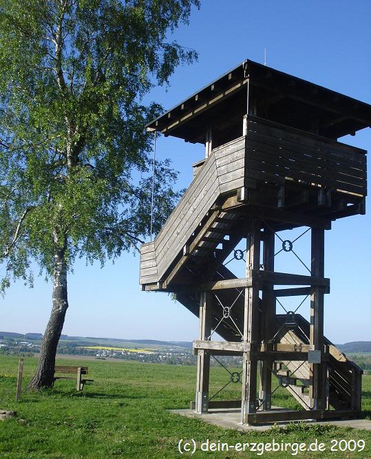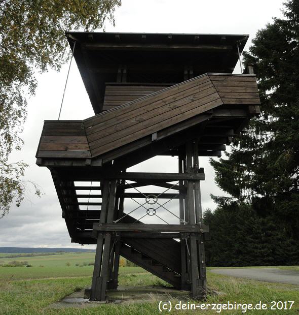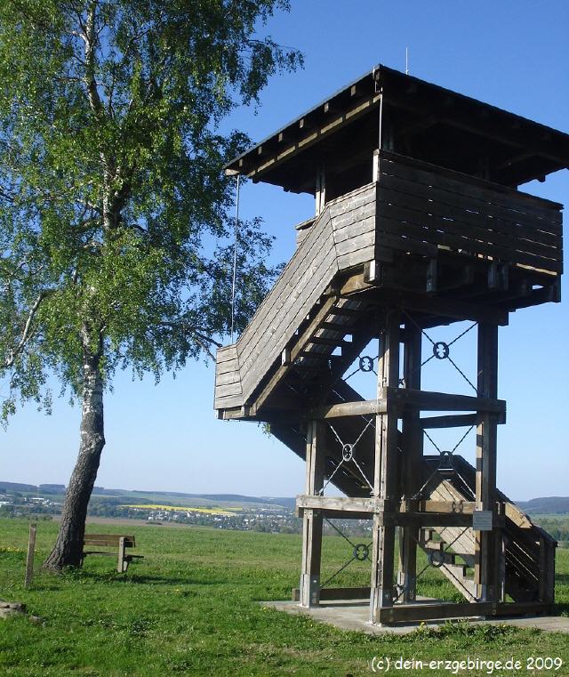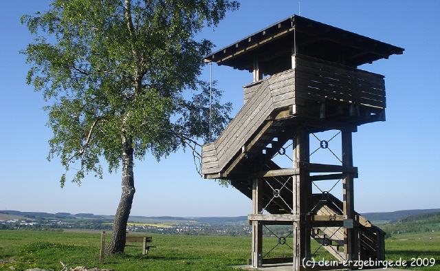 Der Aussichtsturm befindet sich südlich von Zwönitz, einer sehenswerten Stadt im Erzgebirge. Er steht im Ortsteil Kühnhaide auf einer Höhe von etwa 645 m ü. NN. Dieser Turm in Kühnhaide wird auch "Zwönitzblick" genannt und ist einer der kleinsten Aussichtstürme im Erzgebirge. Er besteht größtenteils aus Holz, hat 28 Stufen und eine überdachte Aussichtsplattform ...