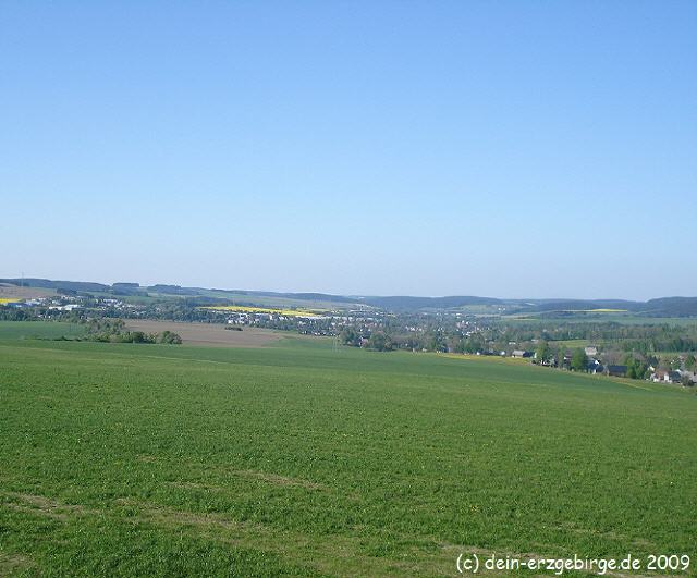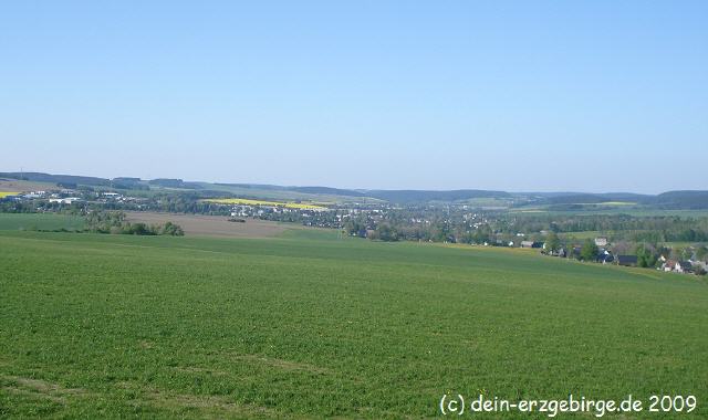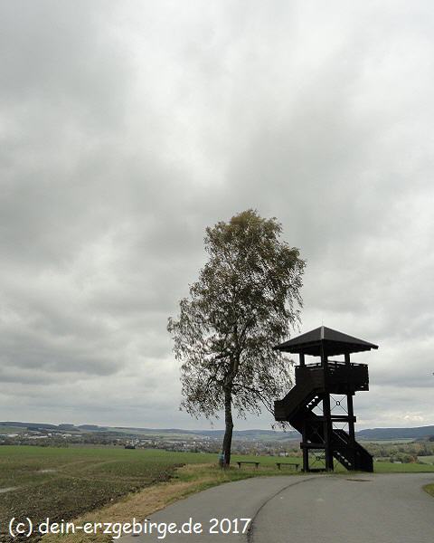 Von der Aussichtsplattform hat man einen sehenswerten Blick über die Stadt Zwönitz sowie auf das Umland im Erzgebirge ... Auch kann man markante Punkte und Ausflugsziele ... in der näheren & weiteren Umgebung erkennen, so z.B. den Schnepfenberg bei Lenkersdorf sowie den Ziegenberg in Zwönitz oder den Fernsehturm bei Geyer uvm. Bei gutem Wetter sind sehenswerte Aussichten bis weit hinein in Sachsen möglich.