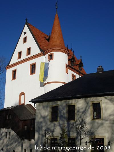 Burgen, Kirchen, Schlösser im Erzgebirge. Hier eine kleine Auswahl: > Schloss Schwarzenberg > St. Wolfgangskirche Schneeberg > Burg Schönfels > Schloss Wildenfels > Trinitatiskirche Carlsfeld > Burg Scharfenstein > Jagdhaus Breitenbrunn |