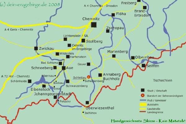 Das Schloss Schlettau im Erzgebirge beherbergt u.a. ein Museum und wird von einem romantischen Park mit zwei Teichen umgeben. Beim Betrachten ergeben sich sehenswerte Ansichten und Bilder, welche oft einen bleibenden Eindruck hinterlassen. Das Museum im Schlettau`er Schloss stellt u.a. die Geschichte dieses bedeutenden Baudenkmals dar. Weitere bekannte Ausflugsziele in Sachsen - unweit von Schlettau im Erzgebirge - sind z.B. der Scheibenberg im Erzgebirge mit seinen berühmten "Orgelpfeifen" oder der Bärenstein im Erzgebirge in der gleichnamigen Gemeinde Bärenstein sowie viele andere mehr ...