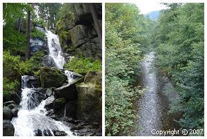U.a. Bäche & Flüsse im Erzgebirge, Bild (l) Wasserfall bei Blauenthal, Foto (r): Zwickauer Mulde, 2007