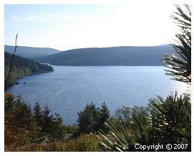 Stauseen und Talsperren im Erzgebirge, Foto (l): Talsperre Eibenstock (2007), Bild (r): Stausee Myslivny (2008)