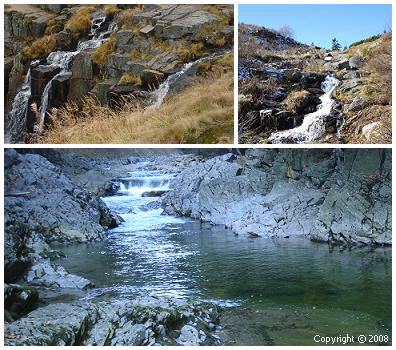 Entlang reizvoller Ausflugsziele im Riesengebirge; Bild o.l/o.r.: Elbfall; Foto u.: Elbe bei Spindlermühle; 2008