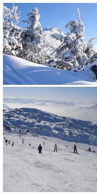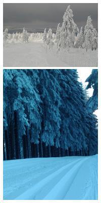 "Entlang reizvoller Wintersport-Regionen in Europa"; Fotos (l): Tirol; Bilder (m): Riesengebirge; Fotos (r): Erzgebirge