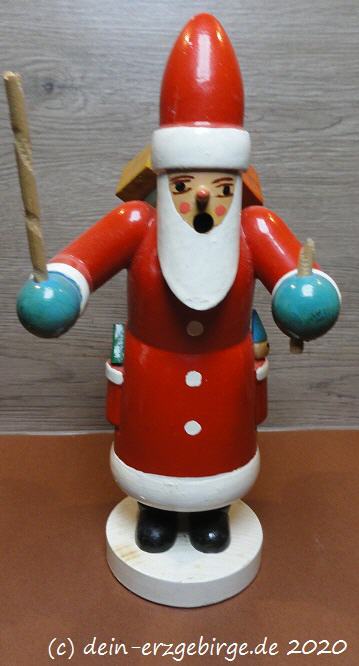 Wollte man erzgebirgische Räucherfiguren zum "Rauchen" bzw. "Qualmen" bringen, so nahm man beide Teile auseinander, zündete ein Räucherkerzchen an, läßt es kurz anglimmen und stellte es auf das Metallplättchen des Unterteils. Danach wurde das Oberteil vom Räuchermännchen auf das Unterteil vom Räuchermännchen gestellt und das Räucherkerzchen glimmte im Innern weiter - der Qualm kommt aus dem Mund der Räucherfigur und ist romantisch anzusehen. Im Erzgebirge hat das Räuchermännchen bzw. die Räucherfigur eine lange Tradition und man kann sie alle Jahre wieder, besonders zu Weihnachten bestaunen.