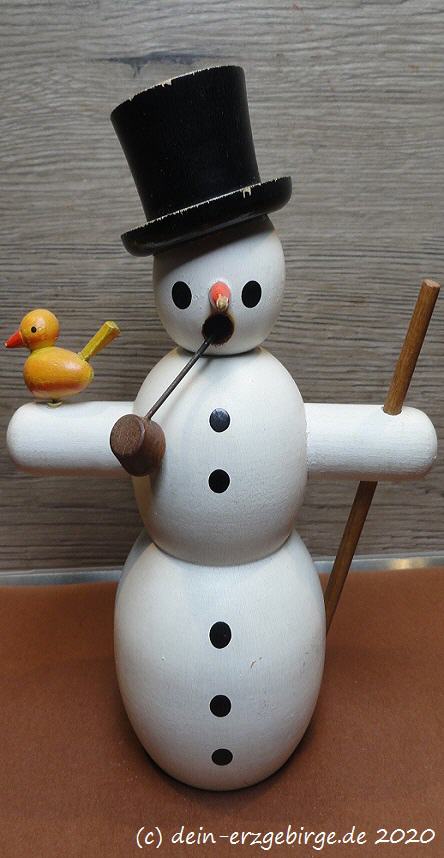 Ein erzgebirgischer Räuchermann wurde meist gedrechselt und bestand aus einem ausgehöhlerten Oberkörper mit Kopf sowie einer Grundplatte mit Beinen o.ä.. Auf den Beinen befand sich eine runde Ablage an der die beiden Teile zusammengesteckt wurden und auf der das Räucherkerzchen stand. Im Kopf und im Oberkörper vom Räuchermännchen aus dem Erzgebirge befand sich je eine Öffnung die für das Rauchen vom Räuchermann zuständig war. Da es bereits vor den Räucherfiguren aus dem Erzgebirge, das Räucherkerzchen gegeben haben soll - wird die Entstehung der Räucherfigur dem allgemeinen Tabakaufkommen um 1900 zugeschrieben. Der rauchende Herr mit Pfeife könnte ein Vorbild für die erzgebirgische Räucherfigur gewesen sein. Zumeist ähnelten erzgebirgische Räuchermännchen den damaligen Berufssparten wie u.a. einem Schäfer, Schuster, Förster, Jäger, Hausierer usw ...