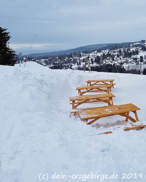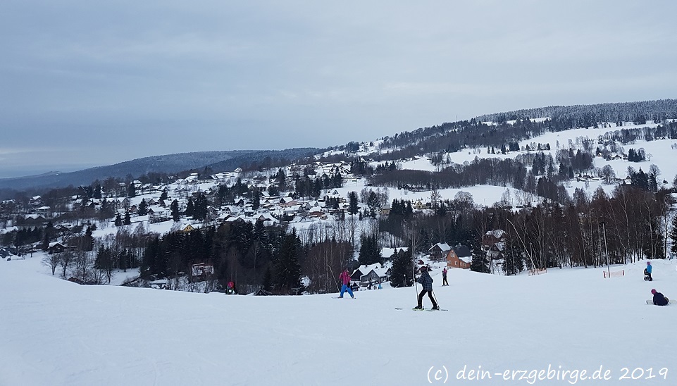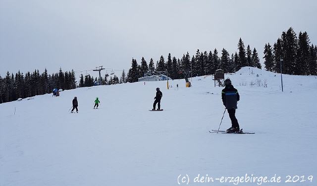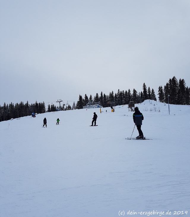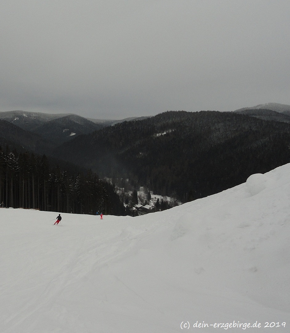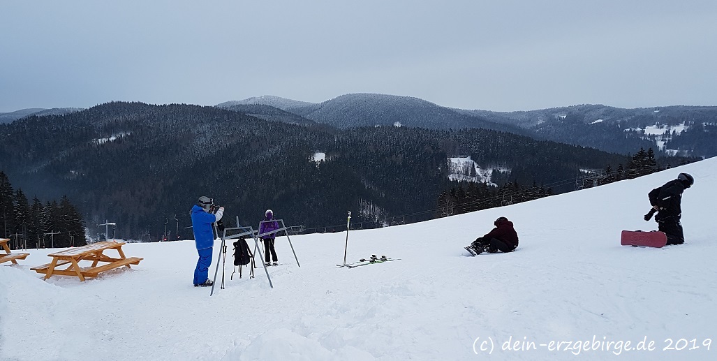 | Bild: "Auf der Ski Piste bei Bublava ... | Blick ins Erzgebirge/Vogtland ... (Februar 2019)" | Foto: "Wintersport bei Bublava | Blick hinauf zum Olovený vrch (Bleiberg) Gipfel" |