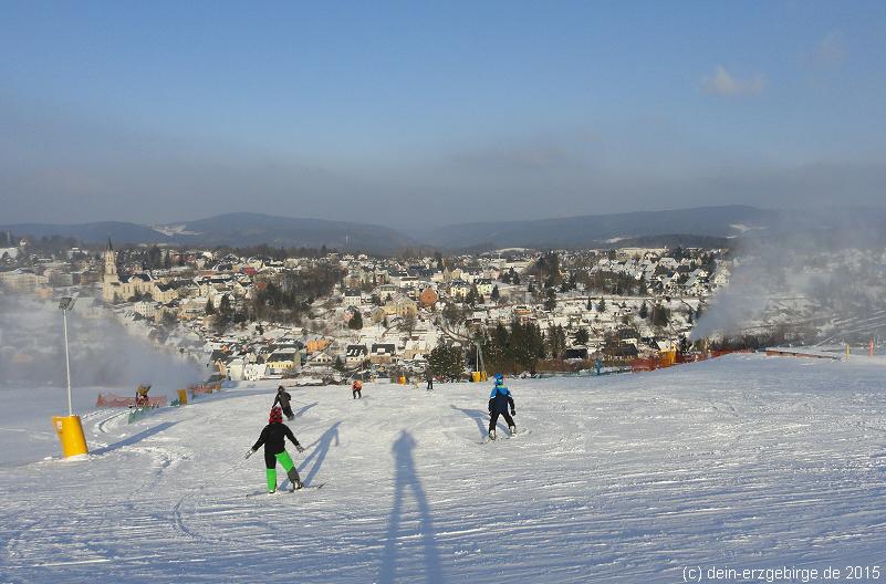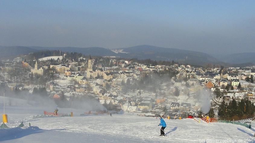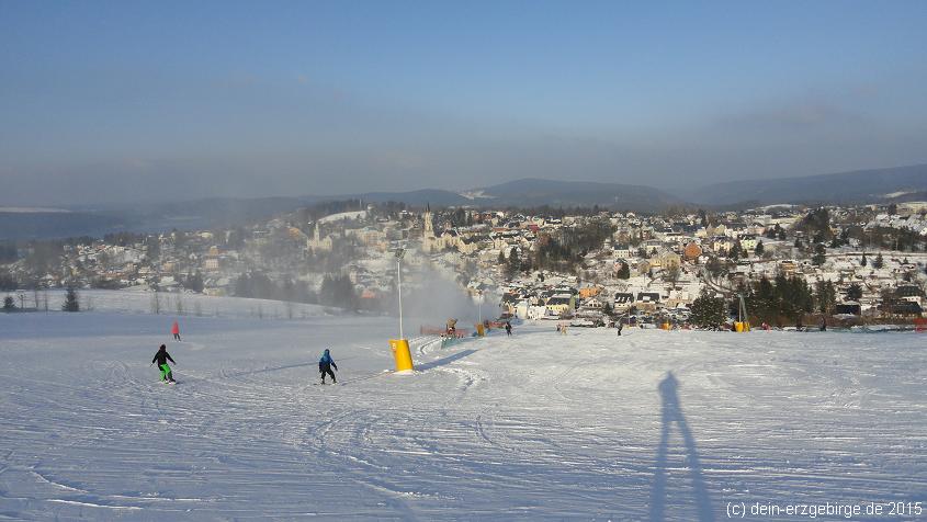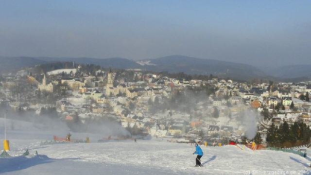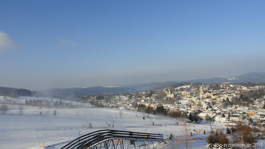 Ein besonderes Highlight von diesem Skigebiet ist u.a. die herrliche Panoramalage der Skipiste, direkt am Stadtrand von Eibenstock, mit tollem Ausblick auf die Stadt und ihre Umgebung ...