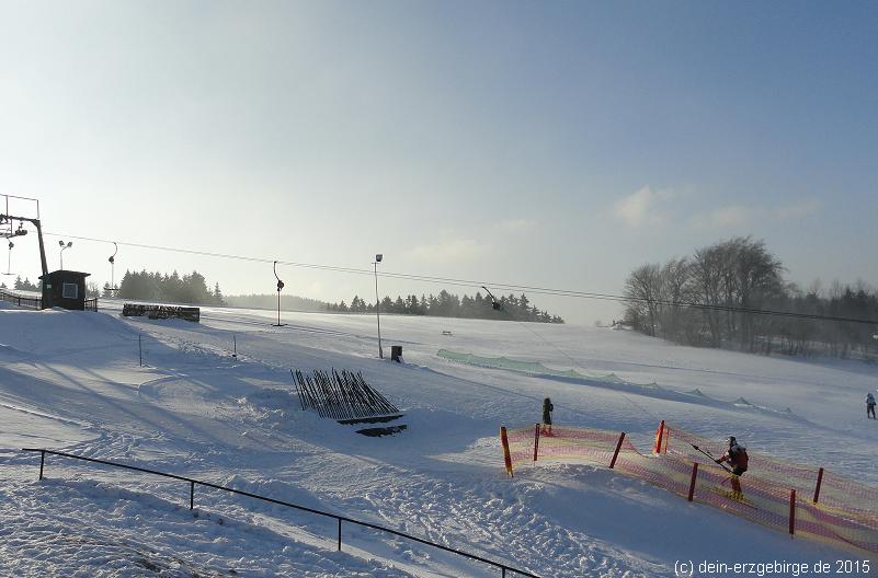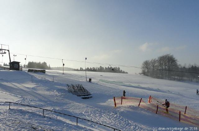Desweiteren hat das Skigebiet in Eibenstock eine gute Ausstattung ... U.a. mit beschneibarem Skihang, Flutlicht, Ski-Förderband, Schlepplifte, Sesselbahn, Möglichkeiten für Snowboard und Rodeln ..., Skihütte, Skischule, Skiverleih und vieles mehr ...