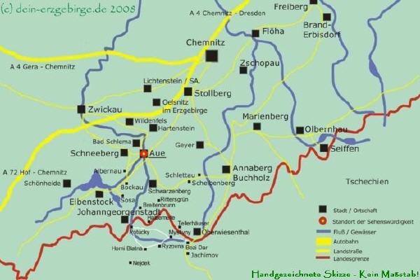 Entlang dem Wanderweg am Floßgraben bei Albernau ... Aue (Sachsen) ... Bad Schlema - kann man die schöne Natur im Erzgebirge genießen und manch Sehenswertes entdecken. Aber auch die nähere und weitere Umgebung im Erzgebirge bietet viele Besonderheiten, so z.B. die Kanzel in Albernau, den Biedenkopfblick in Bad Schlema, den Gleesberg in Schneeberg, den Heidelsberg in Aue (Erzgebirge) u.s.w.