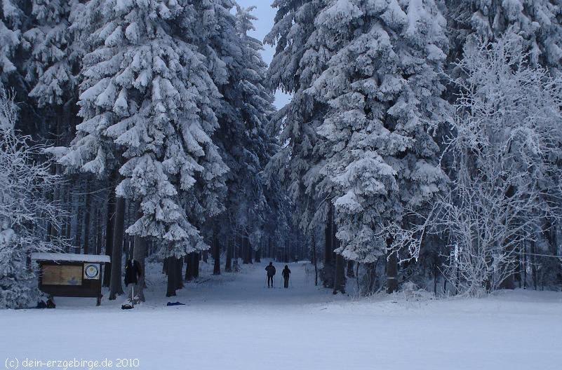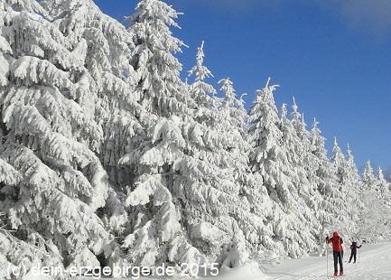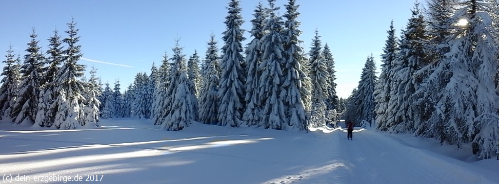 Dabei führt die Kammloipe in ihrem Verlauf, zwischen Schöneck im Vogtland und Johanngeorgenstadt im Erzgebirge, durch eine herrliche Landschaft mit weiten Hochflächen, tollen Aussichten und vor allem märchenhaft schönen Winterwäldern ...