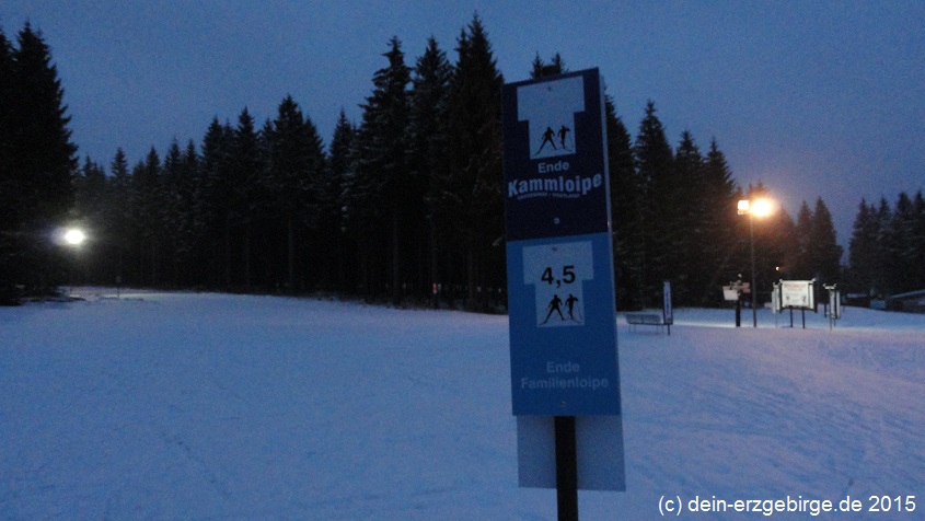 Foto: "Schild: Ende der Kammloipe, in Johanngeorgenstadt im Erzgebirge"