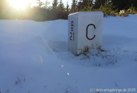 Bild: "Grenzstein zwischen Deutschland und Tschechien ... / ... nahe der Kammloipe zwischen Johanngeorgenstadt und Weitersglashütte"