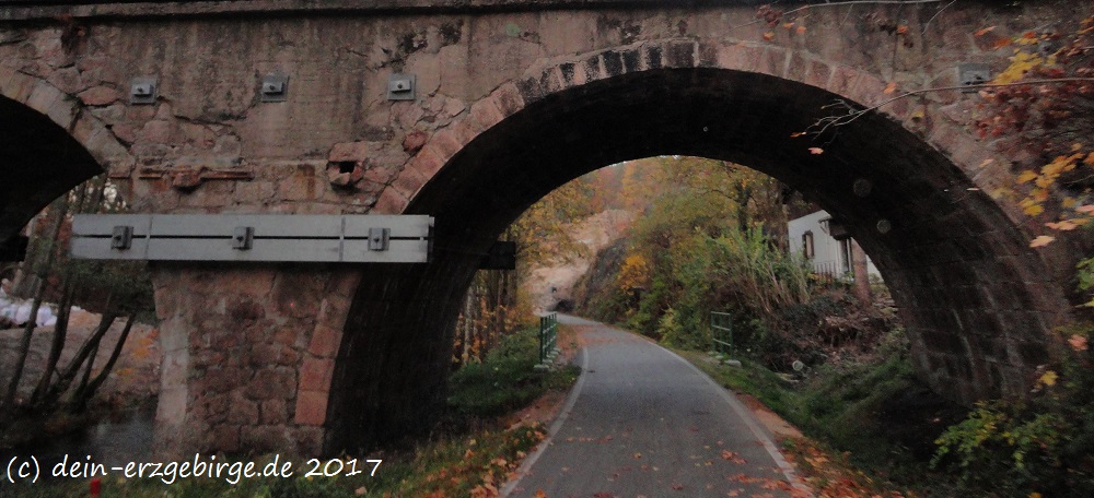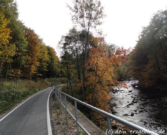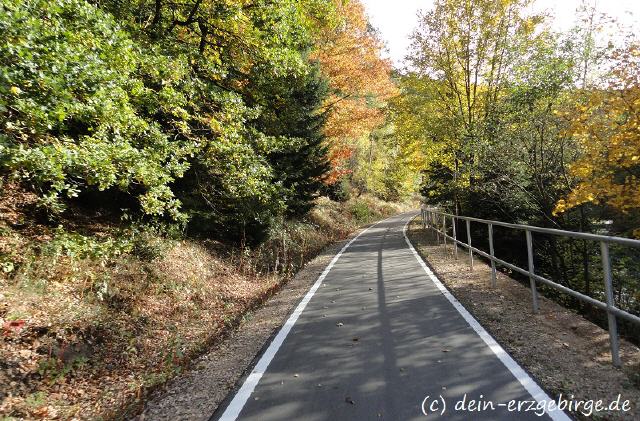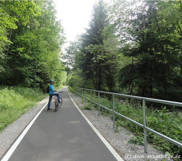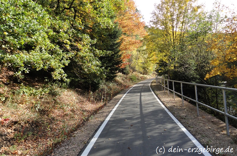 Auf der Seite von Sachsen, zwischen Aue ... Bockau ... Blauenthal, verläuft der schöne Radwanderweg entlang einer stillgelegten Bahnstrecke ... Der Radweg führt hier teilweise direkt am Fluss Zwickauer Mulde entlang ... durch/über mehrere Brücken ... und sogar durch einen ehemaligen Eisenbahntunnel ... Entlang der Karlsroute kann man gut die idyllische Natur & Landschaft von Sachsen genießen und viel Sehenswertes entdecken ...