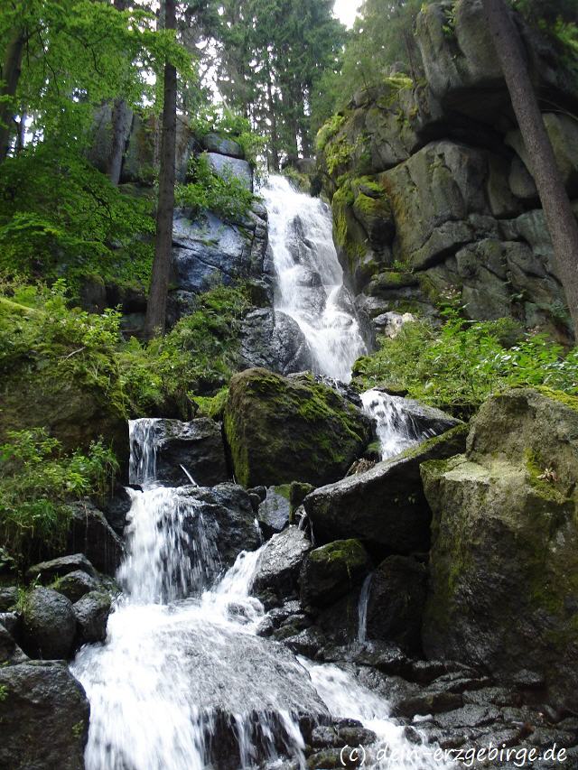 Bei Blauenthal trennt sich die Karlsroute und der Mulderadweg ... Der Radwanderweg Karlsroute verläuft anschließend weiter im Tal der Großen Bockau ... u.a. vorbei am sehenswerten Blauenthaler Wasserfall ...