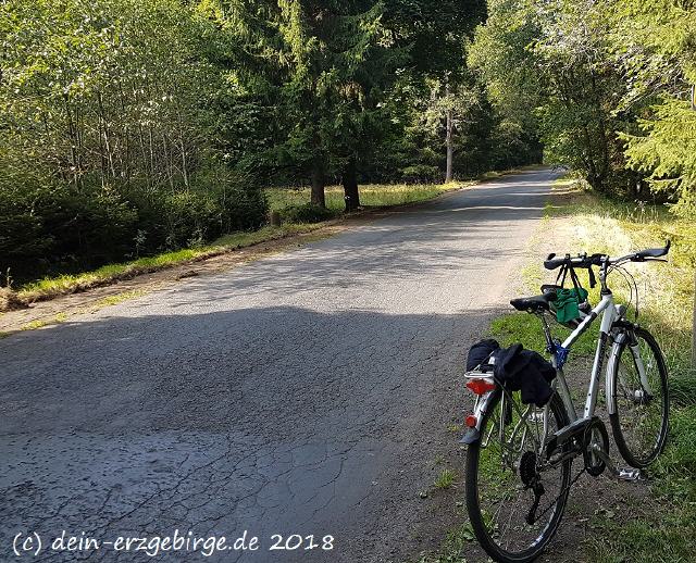 Anschließend radelt man weiter in Richtung Wildenthal ... Oberwildenthal ... hinauf zur Passhöhe "Grenztor" dem höchsten Punkt der Karlsroute (Grenzübergang zwischen Sachsen und Tschechien) ... Danach geht es auf tschechischer Seite wunderbar bergab ... nach Jeleni (Hirschenstand) - einem ehemaligen Kirchdorf am Hirschenstander Pass ...