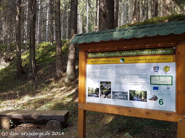 | Bild: "Entlang vom Radweg Karlsroute bei Neuhammer (Nove Hamry) ... / Schöner Blick auf den Fluss Rolava" | Foto: "Am Fluss Rolava (Rohlau) entlang ... / hier: Infotafel vom Lehrpfad an der Karlsroute" |