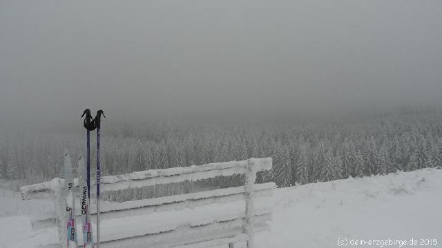 Bild: "beim Ski Langlauf ... in Mühlleithen im Vogtland-Erzgebirge" | Foto: "zw. Schöneck und Klingenthal (OT Mühlleithen) ... an den Loipen ... / ... hier auf dem s.g. "Panoramablick Schneckenstein" |