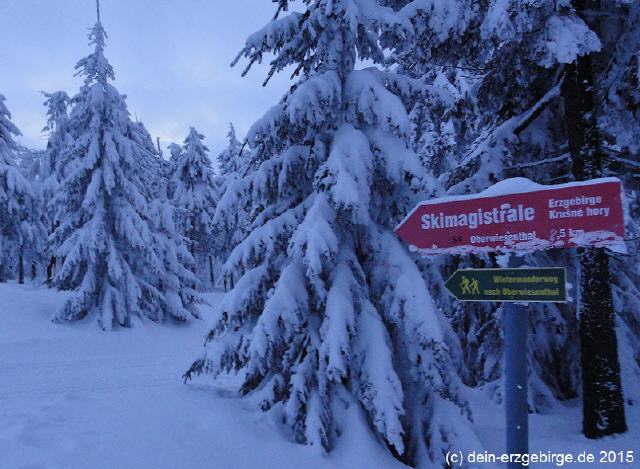 Der überregionale Skifernwanderweg Skimagistrale Erzgebirge/Krušné hory (mit Kammloipe, Skimagistrale und Osterzgebirgsloipe) verläuft vom Vogtland bis ins Osterzgebirge - und umgekehrt. Dabei führt der Skifernwanderweg entlang bzw. durch die nähere Umgebung schöner Orte, Städte & Gemeinden in Deutschland und Tschechien.