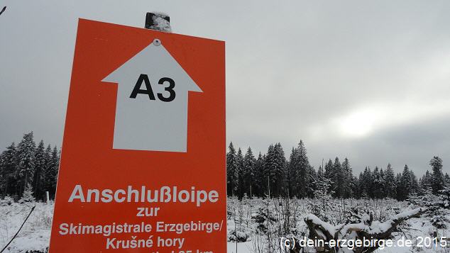 Desweiteren führen in Sachsen & Tschechien eine Vielzahl schöner Anschluß-Loipen zur Skimagistrale Erzgebirge/Krušné hory. Auch gibt es gute Verbindungsmöglichkeiten zu regionalen u. örtlichen Loipen-Netzen ..., so z.B. bei Schöneck, Mühlleithen, Eibenstock, Johanngeorgenstadt, Boží Dar, Oberwiesenthal uvm.