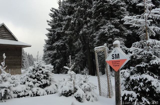 | Foto: "am Skifernwanderweg Vogtland-Osterzgebirge (mit Kammloipe-Skimagistrale-Osterzgebirgsloipe) ... / ... Standort in Deutschland/Sachsen, bei Johanngeorgenstadt (OT Henneberg)" | Bild: "an der Skimagistrale ..., Standort in Tschechien, an der Loipe zw. Abzw. Jelení und Richtung Pernink ... Boží Dar ..." |